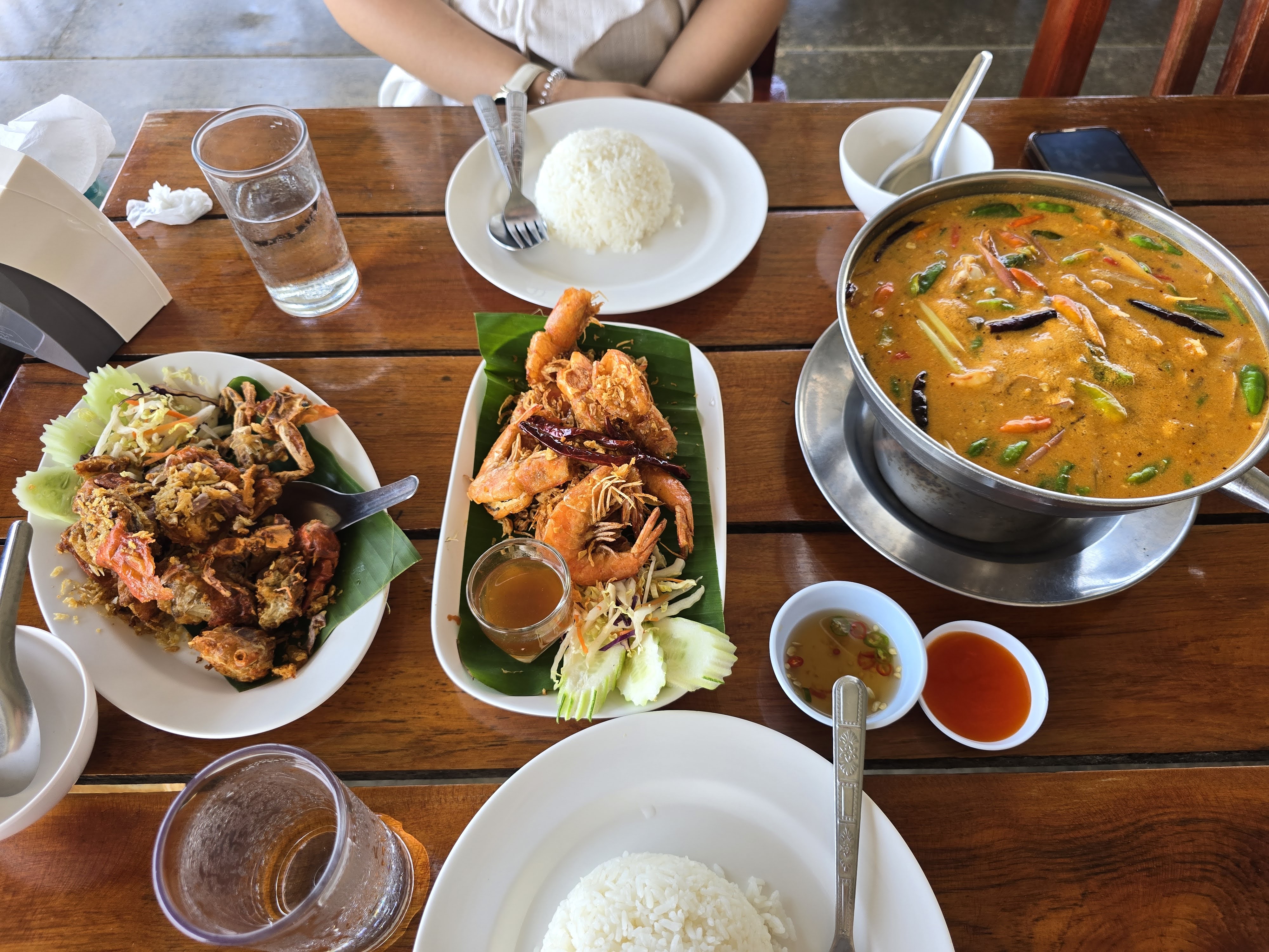 - 13:00 ⭐⭐⭐⭐ ร้านอาหารถ้าจอดซีฟู้ด: ร้านอาหารริมแม่น้ำแวะกินมื้อกลางวันก่อนไปอีกอุทยาน